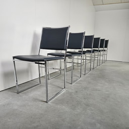 Par muy raro de sillones de cuero y acero de Paul Geoffroy para Uginox, Francia, década de 1970