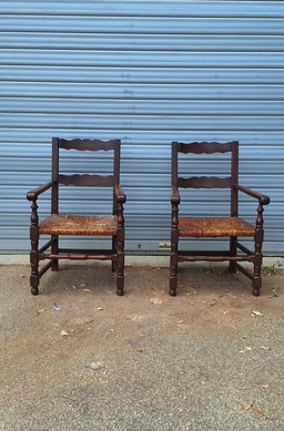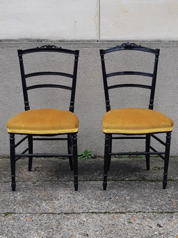 2 sillones estilo Luis XV en tejido de brocado y terciopelo