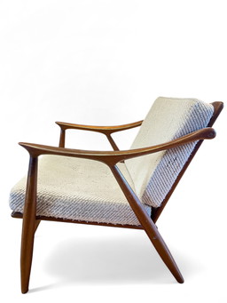 Sillón vintage con estampado de tela jacquard, diseño escandinavo, color madera marrón