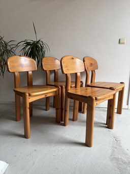Juego de 6 sillas de comedor brutalistas de madera, años 70