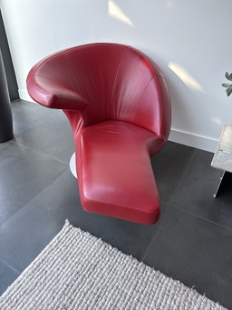 Sillón italiano posmoderno de cuero y cromo, década de 1980