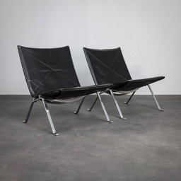 2 Fauteuils lounge de cuero negro vintage WK wonen