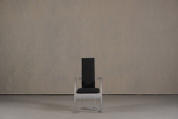6 sillas, modelo Lotus, lacadas, de alto brillo, negras, cojines de asiento en piel, color albaricoque.