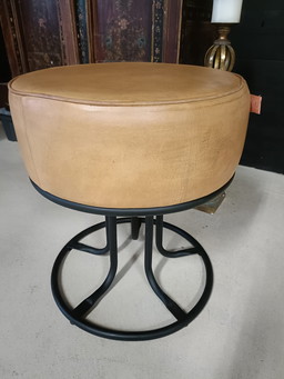Taburete Bolia de cuero marrón | Con espacio de almacenamiento | En perfecto estado