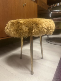 Taburete escandinavo con terciopelo rojo y latón.