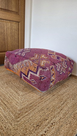 70s fauteuil + hocker in oud roze. Beide op stevige metalen poot, draaibaar 360°.