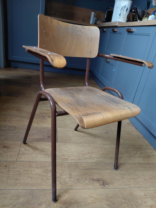 Set of 6 Lammhults Campus Stacking Chairs, Swedish Mid Century Chairs 1970s, Metal & Beech Plywood Dining Chairs
