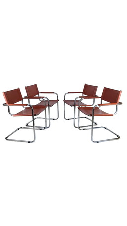 Silla con estructura tubular modelo S34 y cuero color coñac