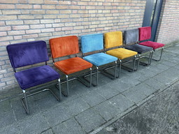4 sillas de trineo de pana con estructura tubular cromada