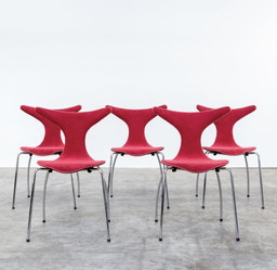 Juego de 6 sillas de comedor Louis Van Teeffelen, retapizadas
