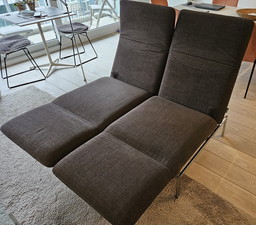 Conjunto de 2 sillones de diseño con estructura tubular.