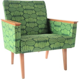 Sillón de madera y tela de mediados de siglo, Checoslovaquia, década de 1960