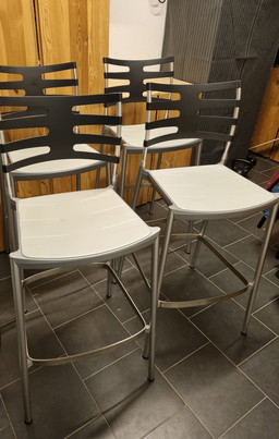 3x Asientos de cuero con respaldo alto sobre base cromada