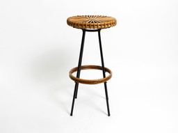 Original taburete de bar de bambú de los años 60 de Dirk VAN SLIEDREGT para Rohé Noordwolde Países Bajos