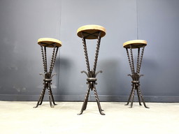 Taburetes de bar brutalistas de mediados de siglo (juego de 3), década de 1960