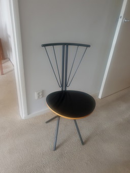 Cuatro sillas de cocina de diseño vintage en cuero sintético azul medianoche y cromo, Bélgica, década de 1960