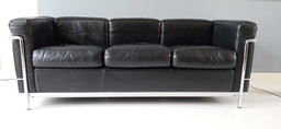Sofá Leolux Mink de 3 plazas en piel negra, como nuevo