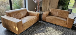 Conjunto de sofá vintage de piel de búfalo: diseño atemporal, comodidad inigualable y carácter auténtico.