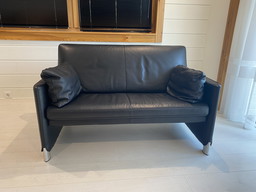 Sofá de dos plazas Leolux, cuero negro, antípoda