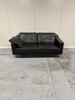 Sofá Rolf Benz modelo 333 de cuero negro con 5 cojines de tela nuevos