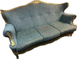Antiguo sofá francés de 3 plazas en madera de nogal de estilo rococó, completamente reformado.