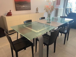 Mesa de comedor de cristal de Peter Ghyzcy.