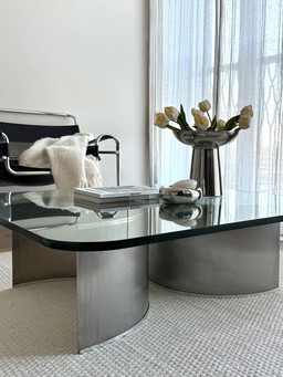 Mesa de centro cascada Fiam Italia, cristal curvado.