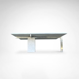 Mesa de centro Carax de Christine Kröncke en vidrio y acero.