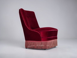 Sillón danés de los años 60, tapizado en terciopelo original color miel.