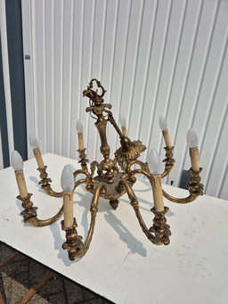 Espejo de pared de madera dorada estilo Luis XV, decoración de conchas rococó, circa 1960.