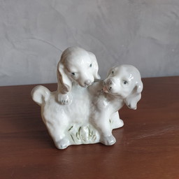 Sujetalibros vintage con dos pájaros carpinteros en una rama, de peltre patinado sobre una tapa de mármol de estilo Art Déco.