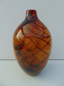Jarrón en azul, blanco y dorado.