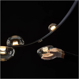 Dining room chandelier Illuminate your dining room with this modern chandelier composed of seven smoked glass globes. Its refine