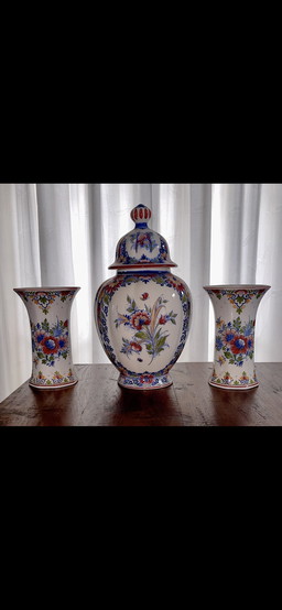 Jarrón vintage antiguo con tapa de porcelana Petrus Regout Maastricht Porcelana