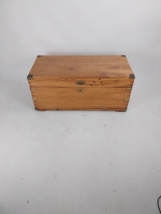 Este precioso baúl de campaña de madera de alcanfor, de alrededor de 1870, irradia una elegancia atemporal que realza cualquier espacio. Con su robusta construcción y refinados detalles, este baúl es un testimonio de la artesanía de una época pasada.