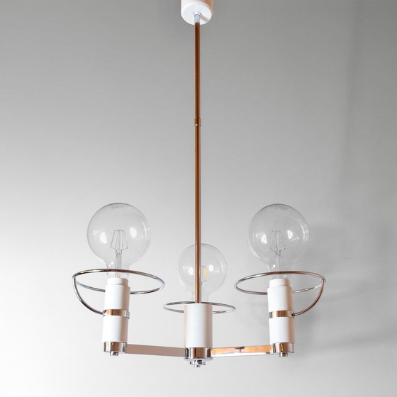 1 lámpara de araña cromada de tres luces de la era espacial, Italia, década de 1970