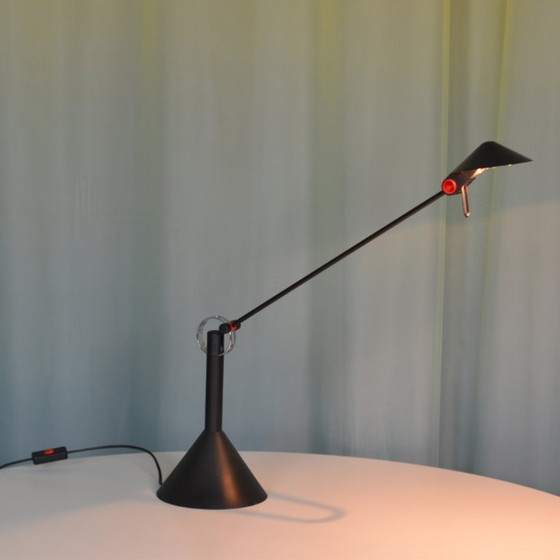 Esta lámpara de escritorio Memphis de Brilliant Leuchten para Hema, de 1980, es una pieza elegante y funcional para cualquier espacio de trabajo. Su característico estilo Memphis añade un toque retro a tu escritorio. Fabricada en metal resistente, presenta una llamativa combinación de colores en negro y rojo. Perfecta para los amantes del diseño que buscan una solución de iluminación única y práctica.