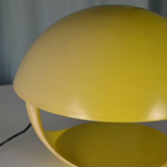 Excepcional lámpara de mesa Cobra diseñada por Elio Martinelli para Martinelli Luce. Esta icónica lámpara de los años 60 está fabricada en una llamativa baquelita amarilla. Con su cableado original y sin toma de tierra, es una auténtica pieza de colección para los amantes del diseño.