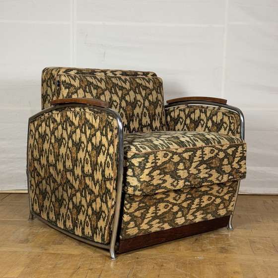 Sillón de diseño moderno de mediados de siglo del húngaro József Peresztegi. El sillón tiene una estructura tubular cromada con armazón de madera de pino y muelles. Se convierte fácilmente en una cama de 180 cm de largo. Fabricado en Hungría en la década de 1960. Esta pieza excepcional se encuentra en su estado original, con arañazos y desgaste en el armazón y señales de uso intenso en la tapicería. Necesita una reforma. Dimensiones: 80 cm de ancho x 100 cm de profundidad x 83 cm de alto. Altura del asiento: 44 cm. El sillón se encuentra en Budapest, Hungría. Ofrecemos entrega dentro de Europa. El precio mostrado es el precio de recogida. Para conocer los gastos de envío, contácteme.
