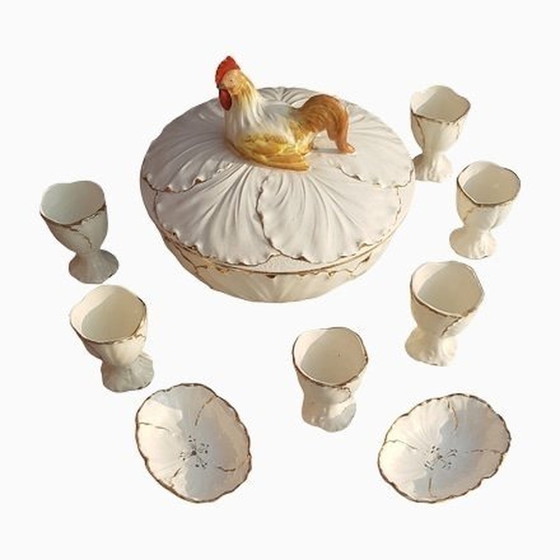 10 platos antiguos de huevo orientales con cuenco y hueveras