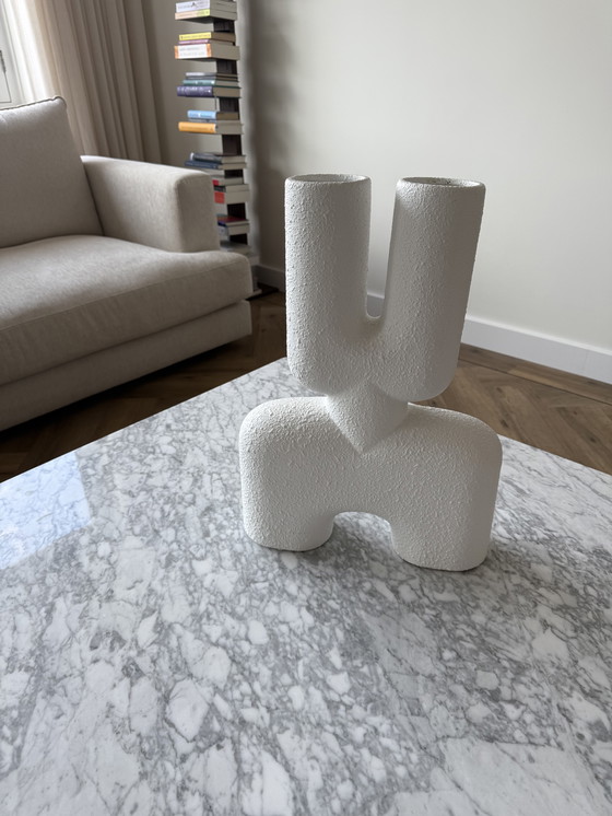 El 101 Copenhagen Cobra Jarrón Doble en Blanco Burbuja es una hermosa pieza moderna que añade un toque de elegancia a cualquier espacio. Fabricado en cerámica de alta calidad, este jarrón presenta un diseño único y escultural que recuerda a una cobra. Su superficie texturizada y su prístino color blanco hacen de este jarrón un complemento versátil para varios estilos de interior. Perfecto para poner flores o como objeto decorativo independiente, este jarrón es a la vez funcional y artístico.