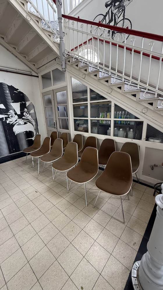 Este conjunto de 12 sillas laterales de fibra de vidrio Eames DSX, una colaboración entre Herman Miller y Vitra, muestra el icónico diseño moderno de mediados de siglo. Fabricadas en fibra de vidrio duradera y metal, estas sillas son perfectas para añadir un toque de elegancia vintage a cualquier espacio. A pesar de su estado muy usado, conservan su integridad estructural y su atractivo clásico, lo que las convierte en un valioso complemento para coleccionistas o entusiastas del diseño de mediados de siglo. ¡estado muy usado! Para restaurar.