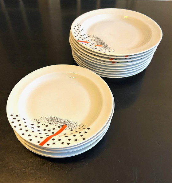 Platos de porcelana, edición Wavel, Polonia 10 platos de 19 cm de diámetro 6 platos de 17,5 cm de diámetro Rastros de desgaste en la impresión en algunos