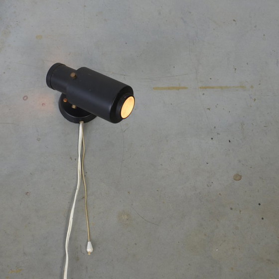 Elegante lámpara de pared con foco Zodiac, diseñada por Jacques Biny y producida por Lita en la década de 1950. Esta lámpara combina un diseño atemporal con funcionalidad, perfecta para cualquier interior moderno o vintage. Cuenta con un interruptor de cordón y conserva su cableado original, apta para países de la UE sin toma de tierra.