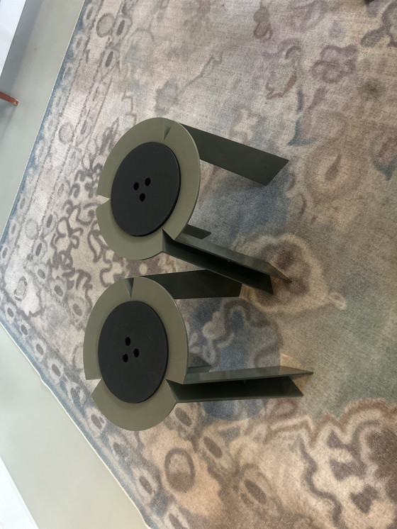 Adéntrate en el mundo del diseño vanguardista con estos dos exquisitos taburetes de Alessandro Mendini para Vanini, creados en 1988. Estas piezas no son solo asientos funcionales, sino una declaración de arte moderno que encarna el espíritu innovador de finales del siglo XX.