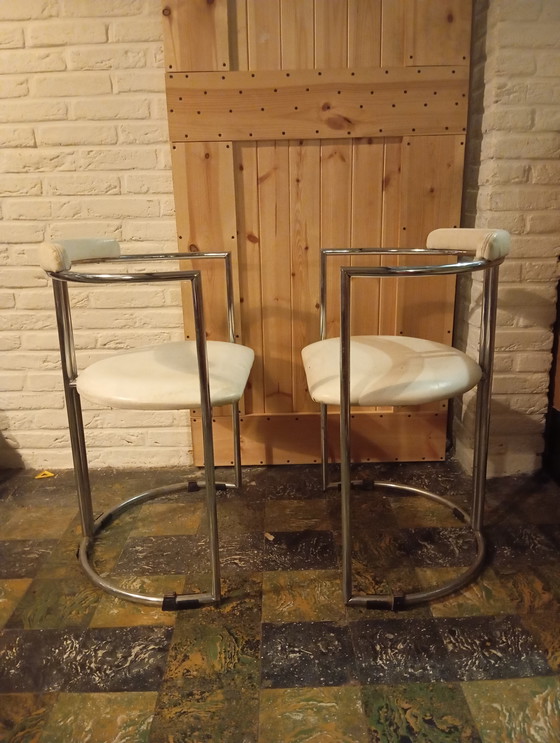 CondiciónBienColoresBlancoMaterialCromo, SkaiNúmero de artículos2Altura90 cmAnchura60 cmProfundidad60 cmAltura del asiento45 cmSignos de usoAgujeros, Arañazos, Crack