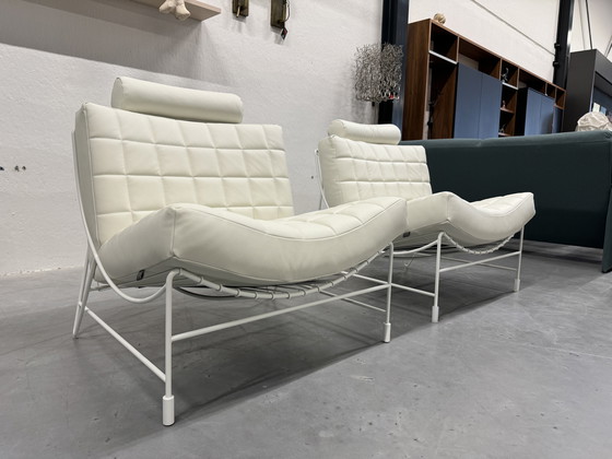 Dos nuevos sillones Leolux Volare en Sabaku con base blanca. Dimensiones: 86 x Pr. 95 x Al. 88 cm, altura del asiento: 42 cm. ¡Ya a la venta por 1750 € cada uno! Precio del conjunto: 3500 €.