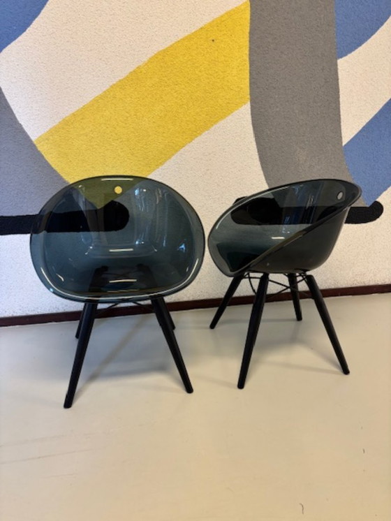 La Gliss Wood 905 es un diseño de Marco Pocci y Claudio Dondoli. Se trata de una reinterpretación moderna de la silla de concha. La carcasa del asiento está hecha de policarbonato transparente y la base de madera de fresno.
