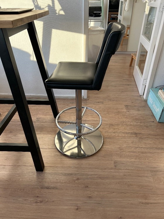 ¡Un hallazgo único! Estos hermosos taburetes de bar suecos. Diseñados por Borje Johanson y producidos por Johanson Design. Este conjunto único, tapizado en piel sintética negra, tiene 15 años y se encuentra en excelentes condiciones. La base cromada en forma de trompeta le da un aspecto elegante. Ofrecen una comodidad excepcional gracias a su respaldo perfectamente ajustado. Ideales para largos ratos sentados o para comer en un bar. Su tamaño intermedio, con una altura de asiento de 68/70 cm, es ideal para que los pies toquen el suelo, ni demasiado alto ni demasiado bajo. ¿Pronto lucirán estas joyas suecas con orgullo en su interiorismo, proyecto o restaurante de hotel?