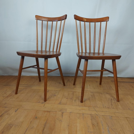 Silla de comedor de haya de TON, años 60. Silla de madera de haya de gran calidad, fabricada por TON en Checoslovaquia durante la década de 1960. En muy buen estado vintage, con mínimas señales de uso. Contáctenos para obtener un presupuesto de envío. Precio por unidad. Ancho 42 x Profundidad 46 x Alto 82 cm, altura del asiento 45 cm.